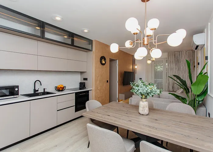 A Stunning Designer Apartment Bella With Private Garage apartman egy tengerparti szálláshely kertre néző kilátással, mely könnyű hozzáférést kínál a Znjan tengerpart területéhez. A Diocletianus palotája autóval 10 perc alatt elérhető, a Podstranai turisztikai információs pont pedig 4 km-re található.